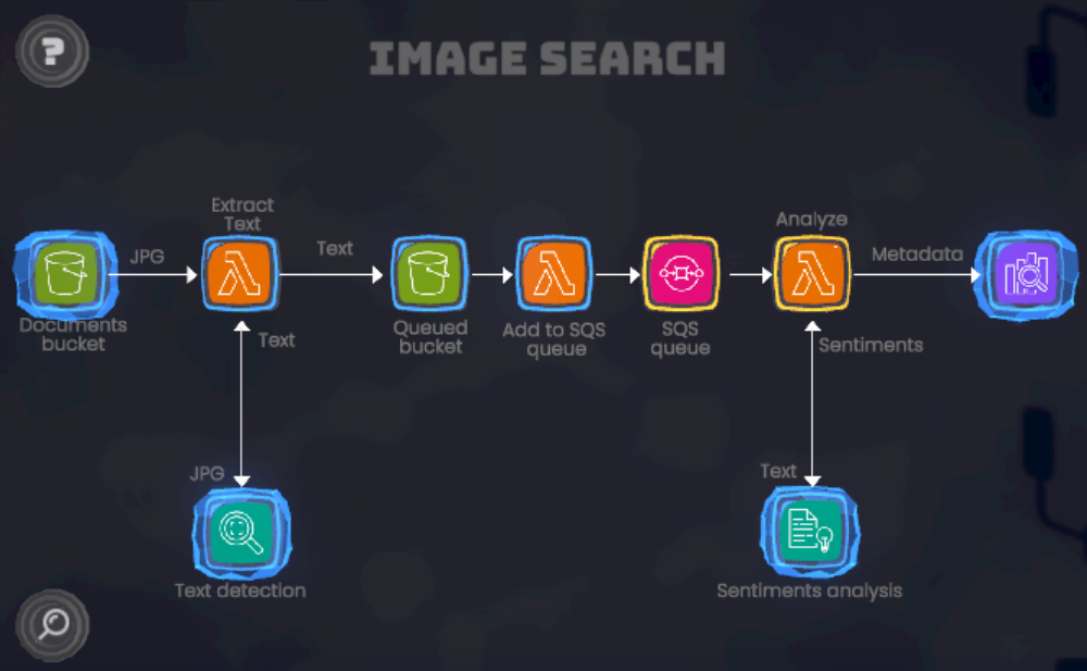 在這一關中,玩家將設計一套事件驅動、以影像為核心的搜尋與分析系統。核心任務是利用 AWS 無伺服器服務來實作圖像的自動標記與搜尋架構,讓使用者能快速從大量圖片中找到所需內容。